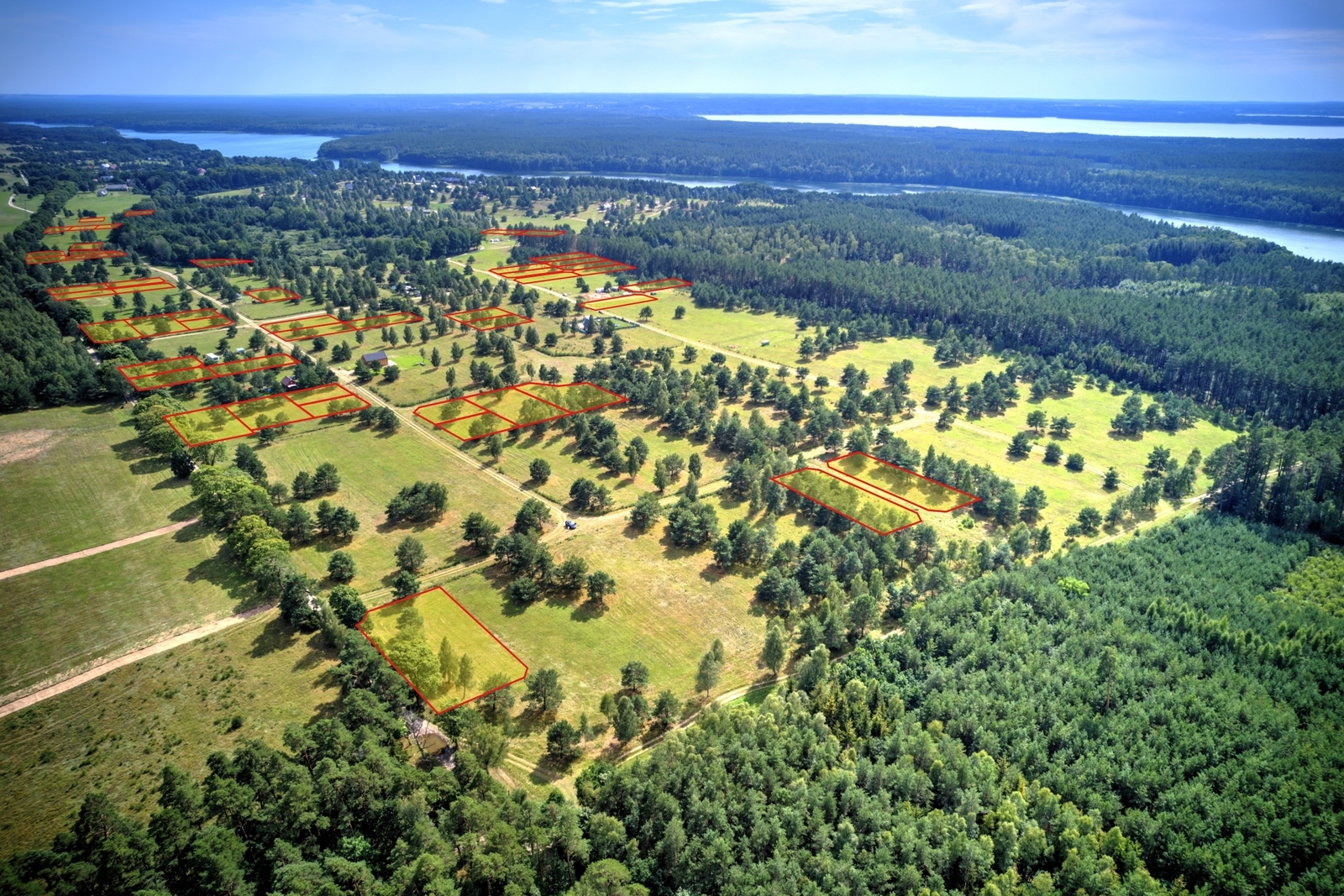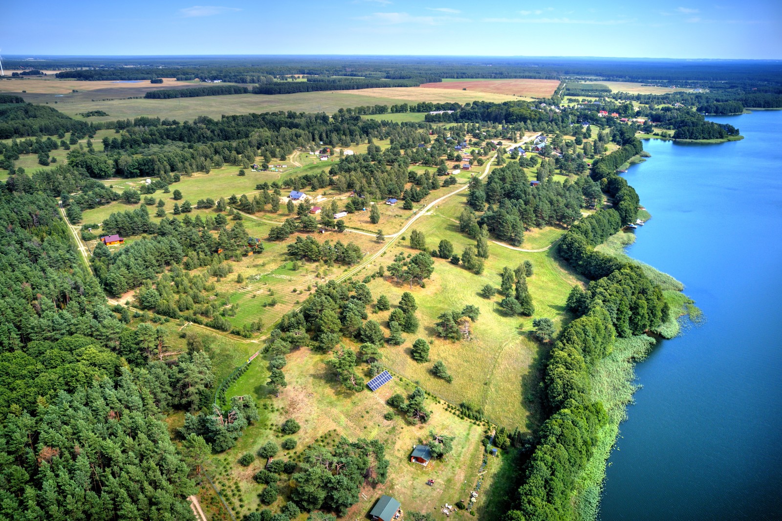 Kupujący w cenie działki nabywa udziały w drodze wewnętrznej, terenach zielonych oraz w prywatnej, zagospodarowanej plaży z bezpośrednim dostępem do jeziora Dołgie.
