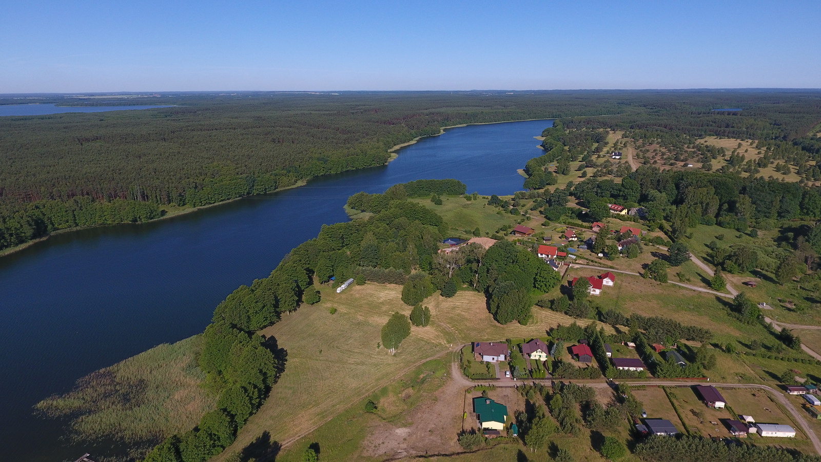 Położona bezpośrednio nad jeziorem Dołgie, z ok. 65-metrową linią brzegową, zapewniaja piękne widoki i bliskość natury. W okolicy znajdują się kompleksy leśne, co dodatkowo zwiększa atrakcyjność lokalizacji.