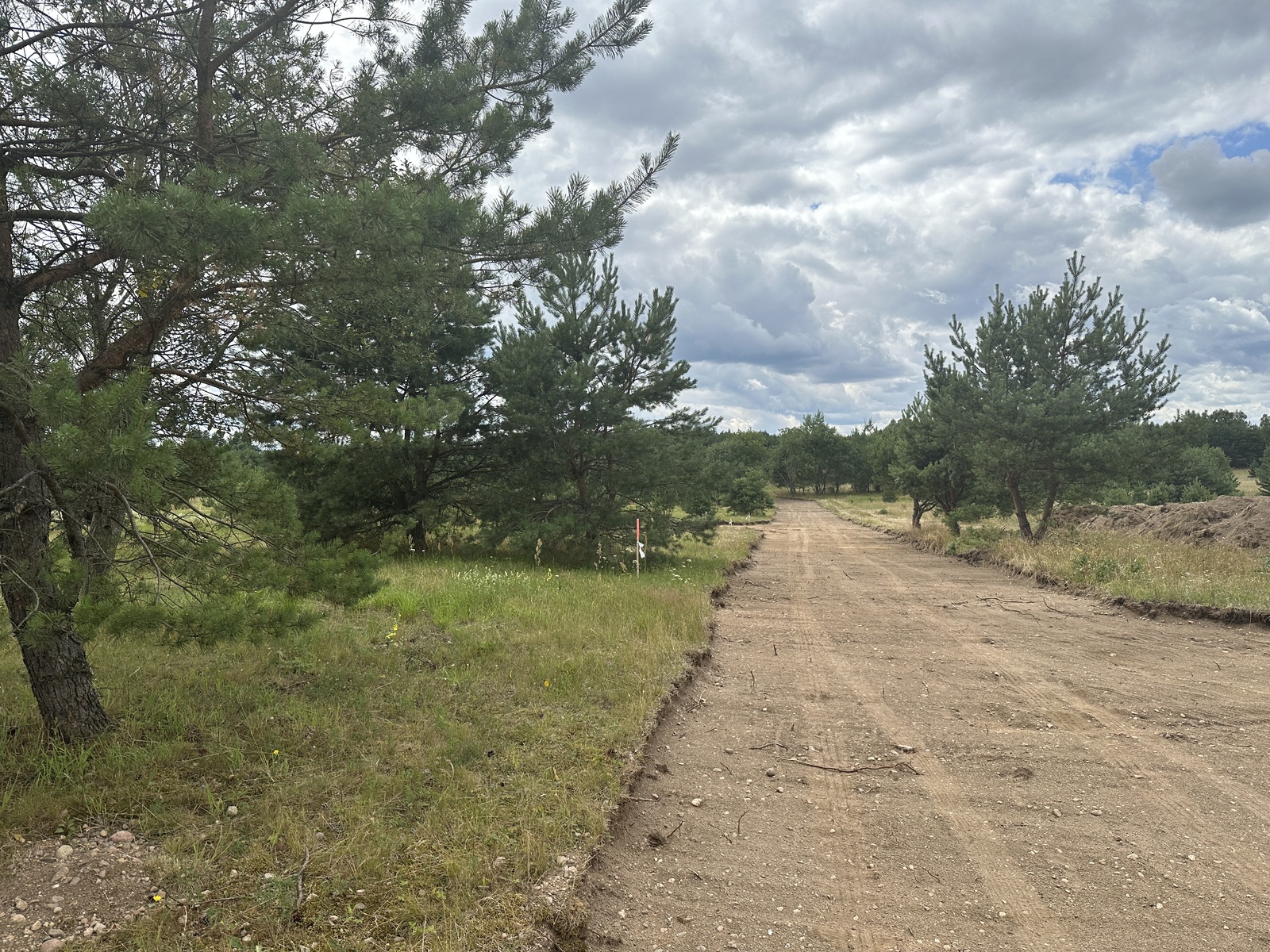 Teren działek równy i częściowo zarośnięty samosieją sosny. Kompleks działek jest oddalony od prywatnej plaży około 620 metrów, a od gminnej plaży około 950 metrów.
